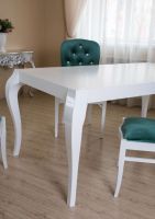 Стол «Quantum» (Квантум) в стиле Ар-деко отличается гармоничным сочетанием цветов – Белый и Белый глянец. Гнутые ножки выполнены с применением технологии «высокий глянец», что придаёт композиции необычный дизайн, притягивающий взгляд.