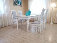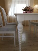 Обеденная группа «Рино-1» с резными ножками. Ножка этой модели декорирована с применением технологии «высокий глянец», что делает композицию нарядной и необычной. Возможно исполнение ножек в цветах "Латте" и " Молочный шоколад".