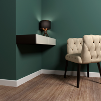 Плинтус мдф белый пл80.1 отличается универсальностью. Его форма, размеры и дизайн удачно вписываются в разные стили интерьера. Этому способствует и возможность нанесения подходящего оттенка краски.